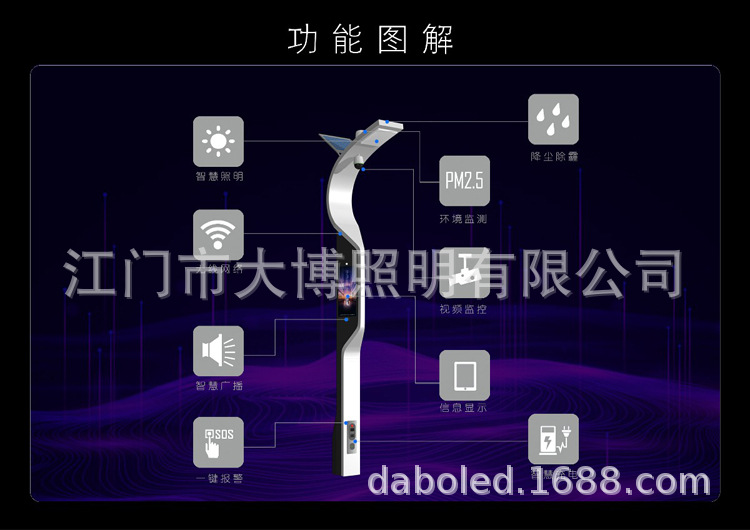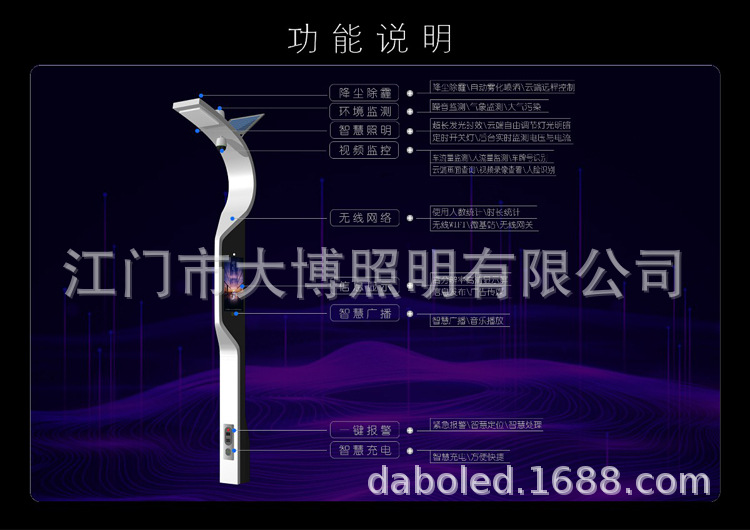 現(xiàn)代特色多功能一體化智慧路燈 充電樁監(jiān)控WIFI小區(qū)公園智能路燈