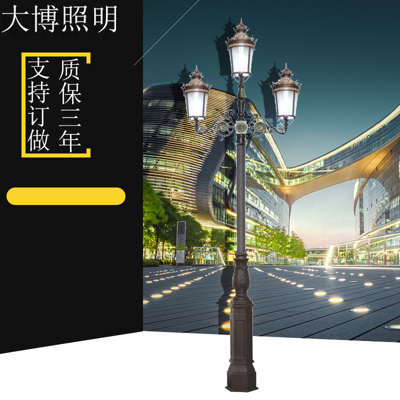 led市電路燈壓鑄鋁歐式庭院燈三頭防水古典古銅色小區裝飾照明燈