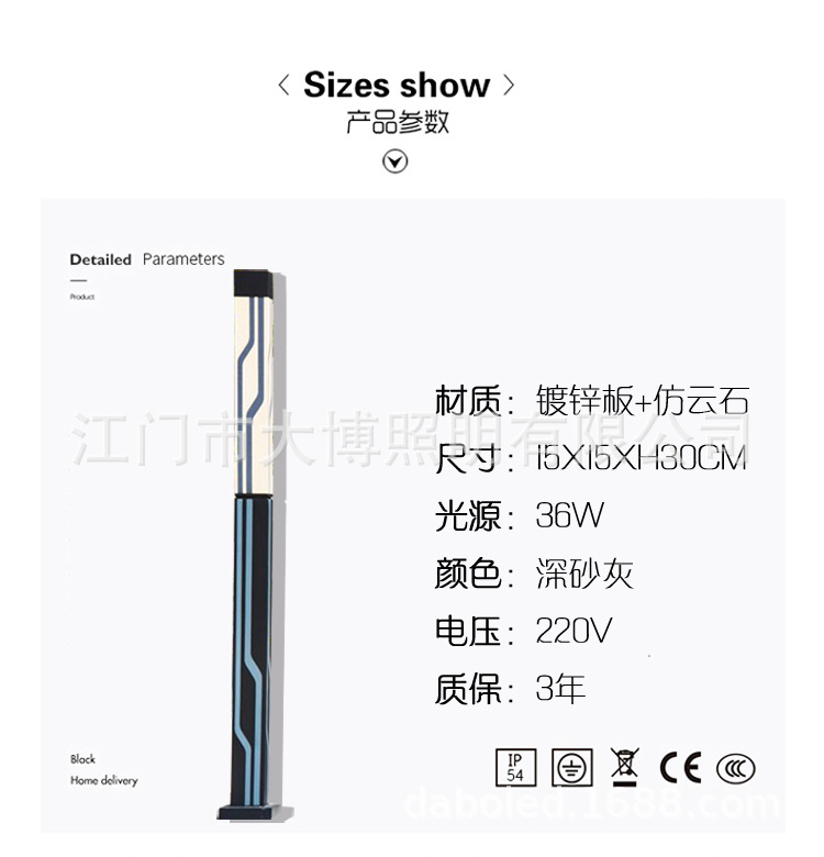 方形景觀燈豎條紋廣場照明戶外簡約景觀燈柱特色LED現代庭院燈