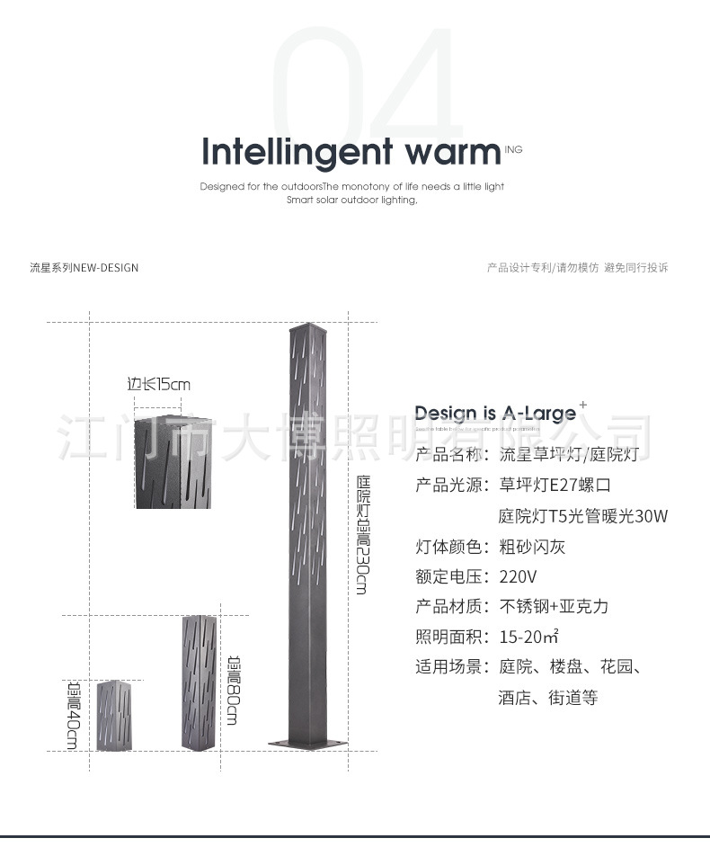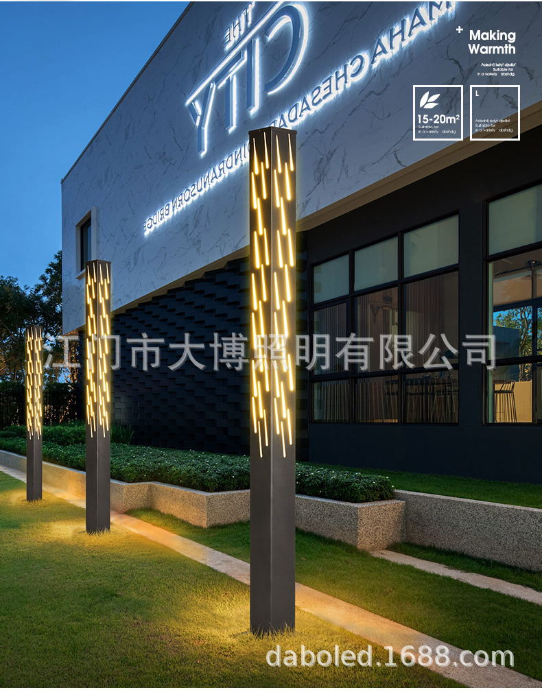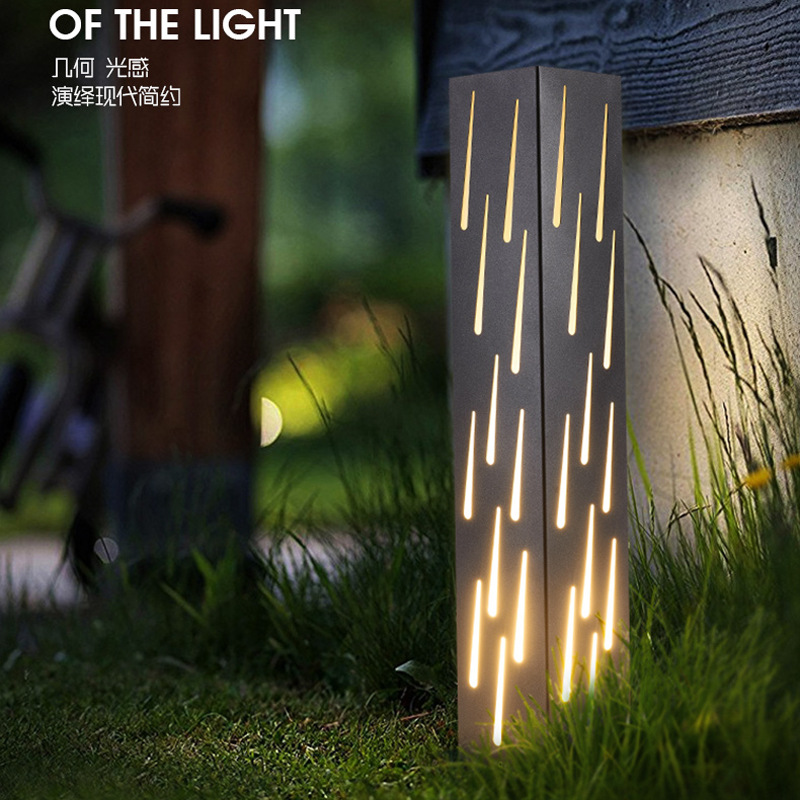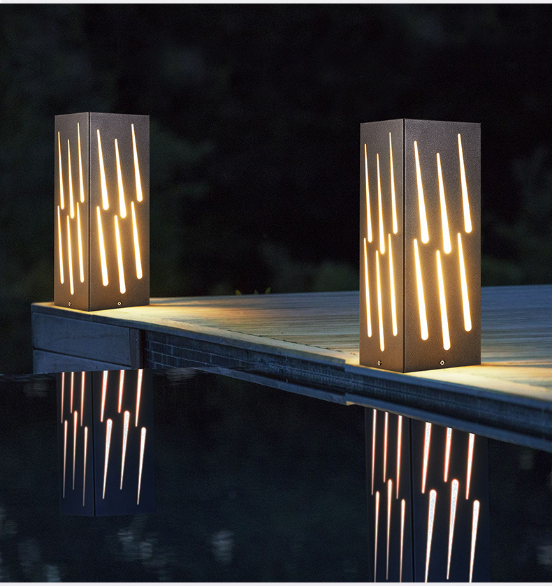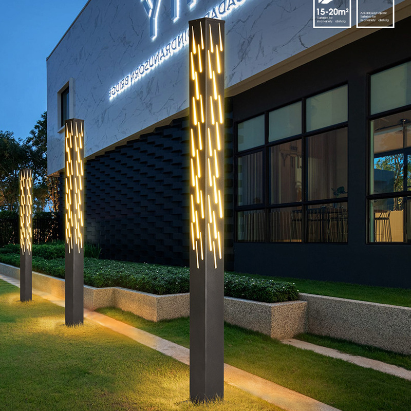 流星雨款庭院燈特色LOGO鏤空工藝方形不銹鋼方形景觀燈柱廠家批發