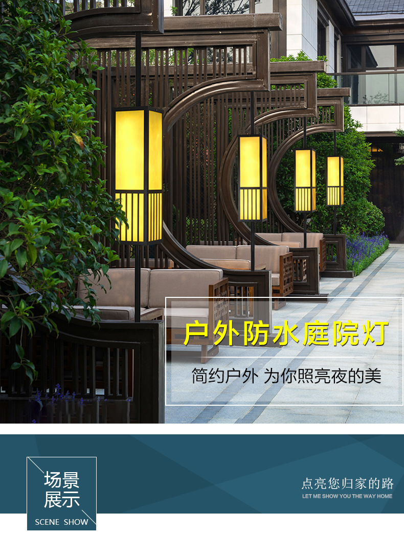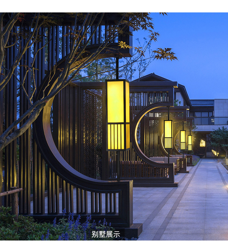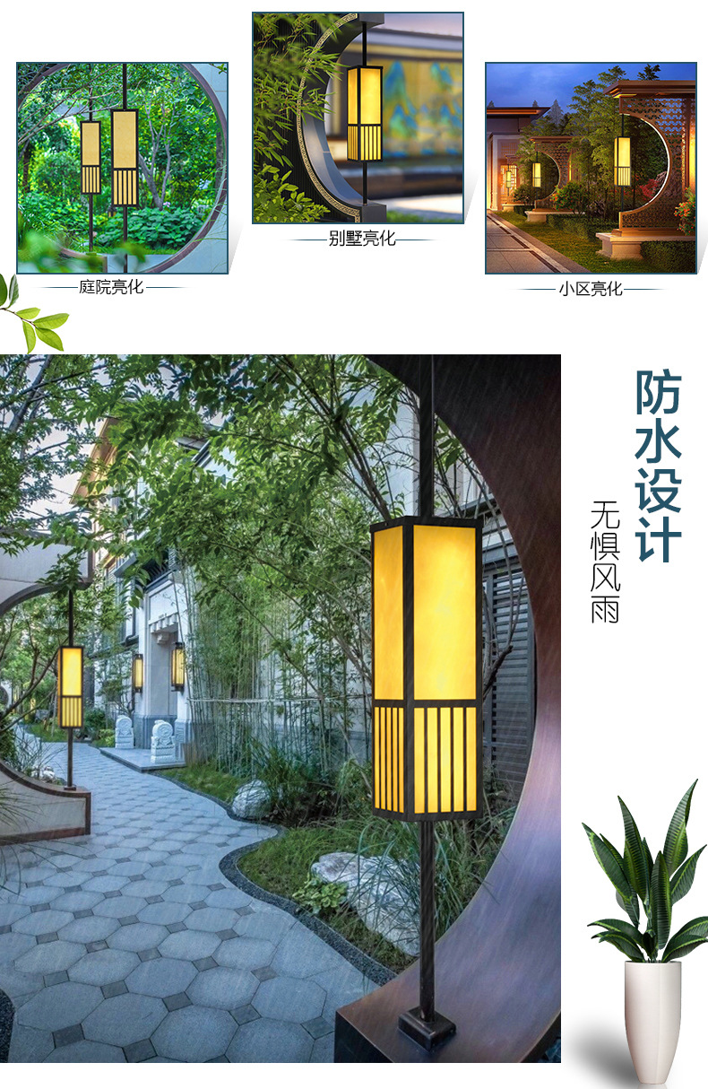 定制新中式太陽能柱頭燈中字庭院燈戶外防水花園別墅圍墻燈
